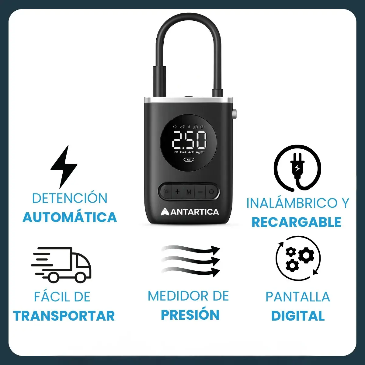 Con este inflador portátil 12V tenés el control en tus manos.