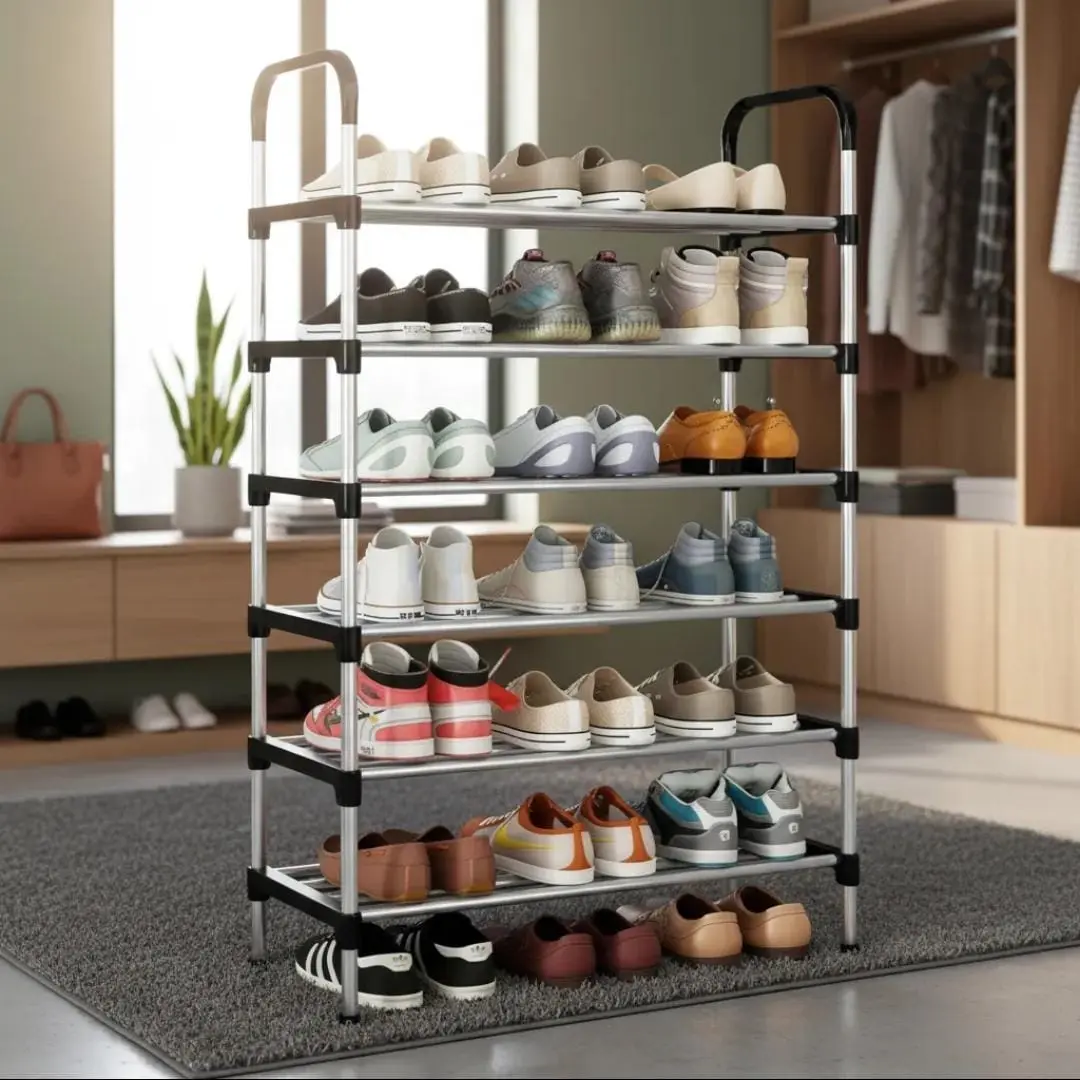 Este zapatero de 6 pisos es la solución ideal para mantener tu calzado ordenado, accesible y bien organizado, incluso en espacios reducidos. Su diseño vertical aprovecha al máximo el lugar disponible, ofreciendo una gran capacidad de guardado en una estructura compacta y funcional.