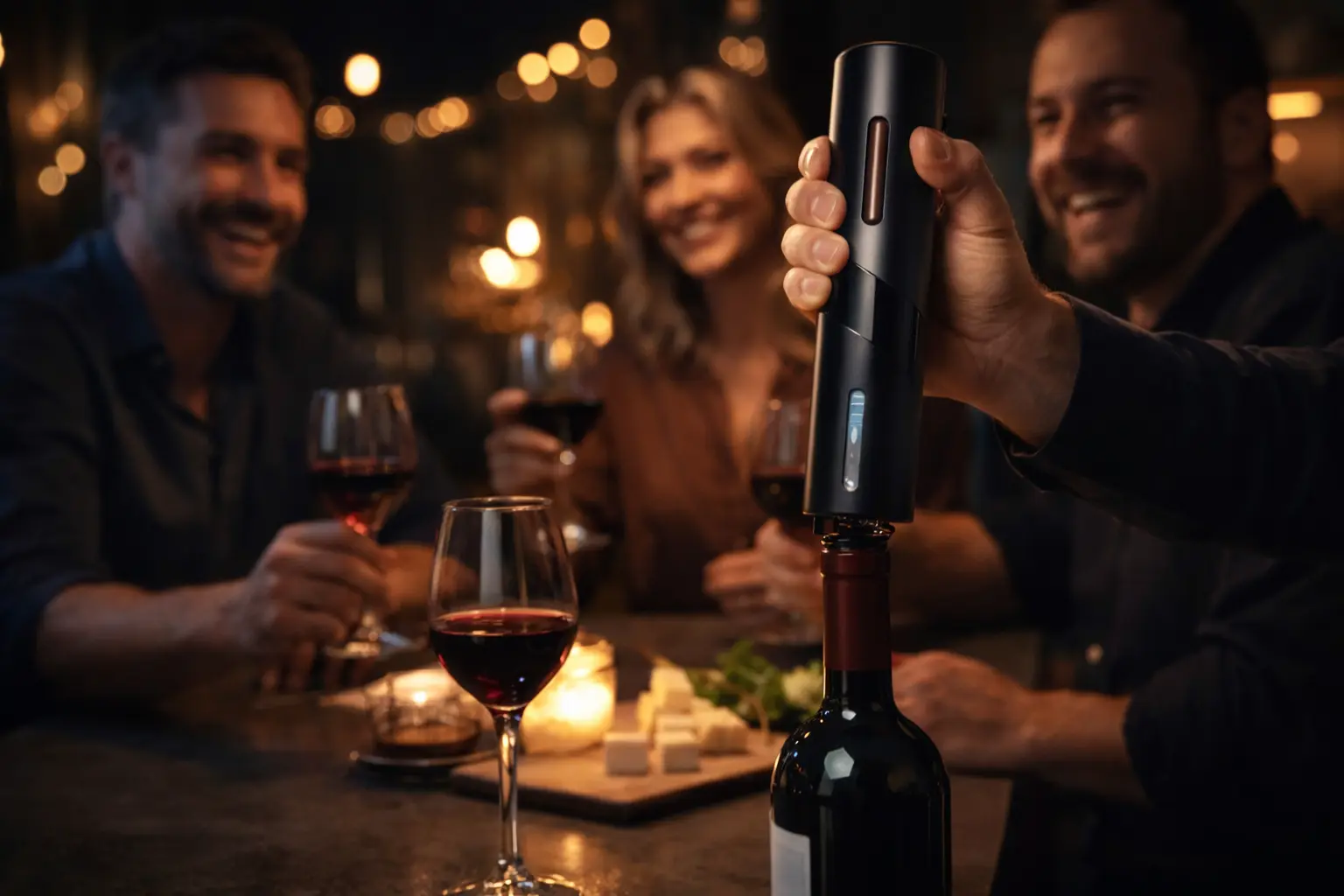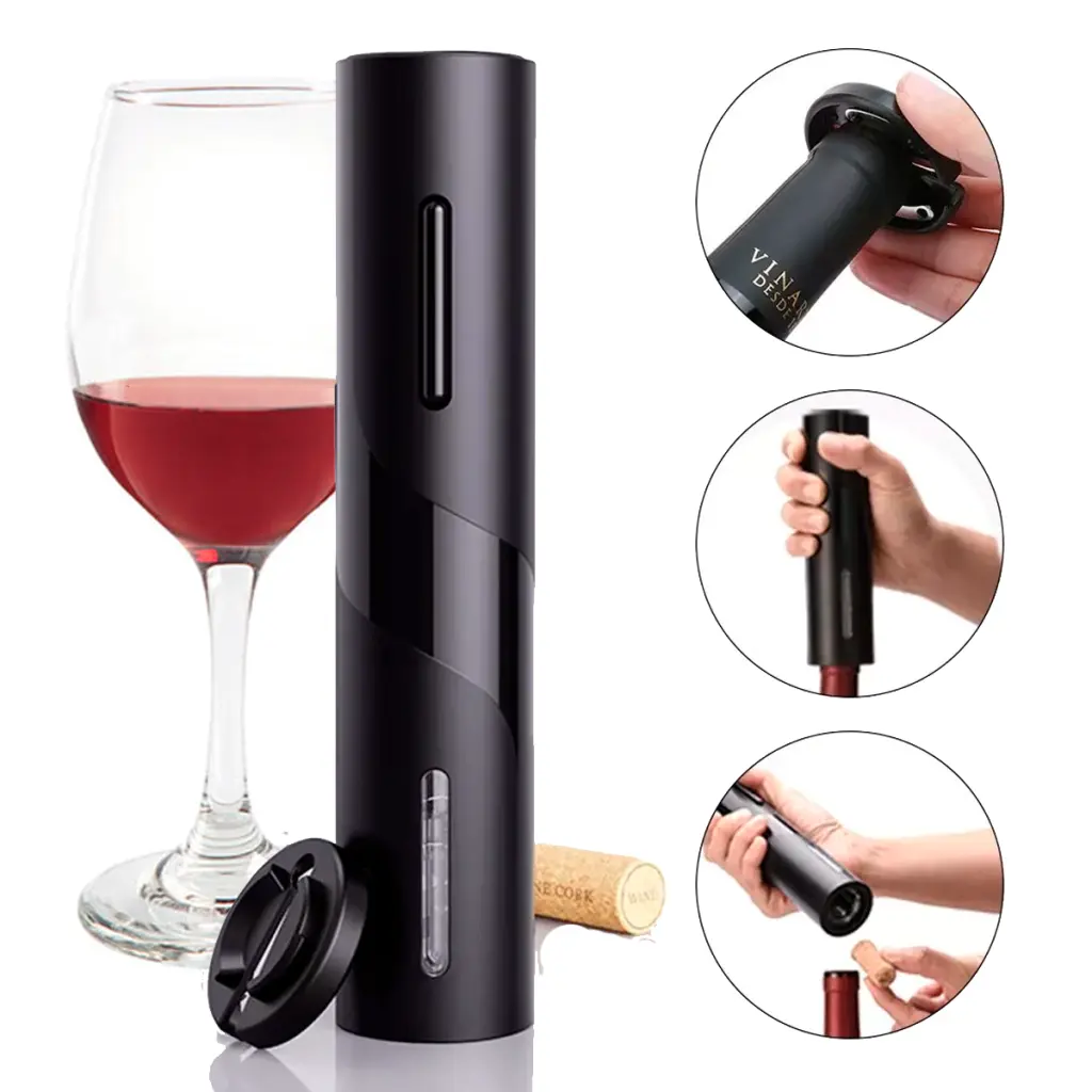 Con nuestro sacacorchos automático, con solo presionar un botón, la botella se abre sola. Sin esfuerzo, sin maniobras raras, sin arruinar el clima.