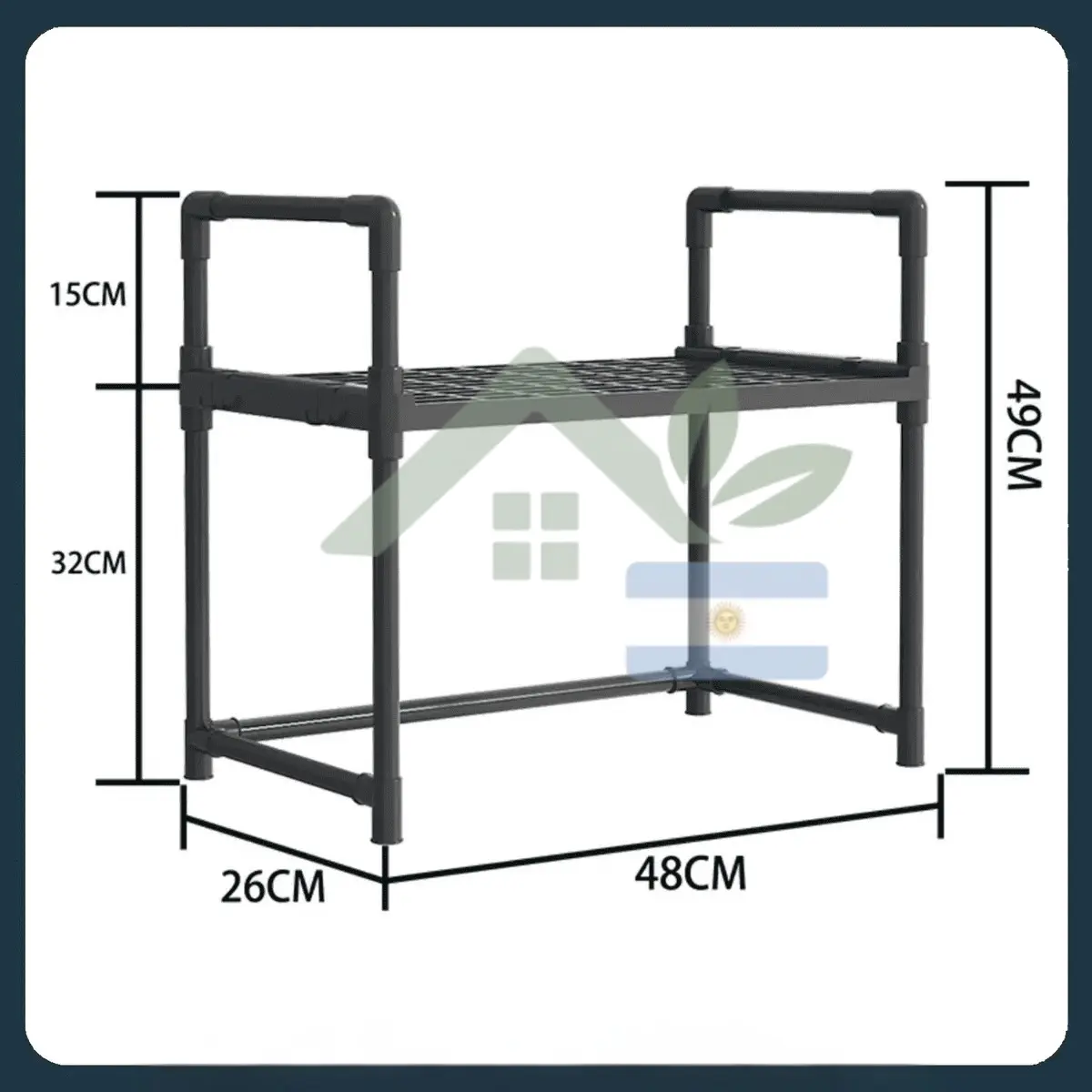 Si tu cocina necesita más organización sin ocupar más lugar, este organizador para microondas es la solución perfecta. Su diseño inteligente permite colocar el microondas en la base y aprovechar el espacio superior como estante adicional, ideal para guardar utensilios, frascos, recipientes o pequeños electrodomésticos.